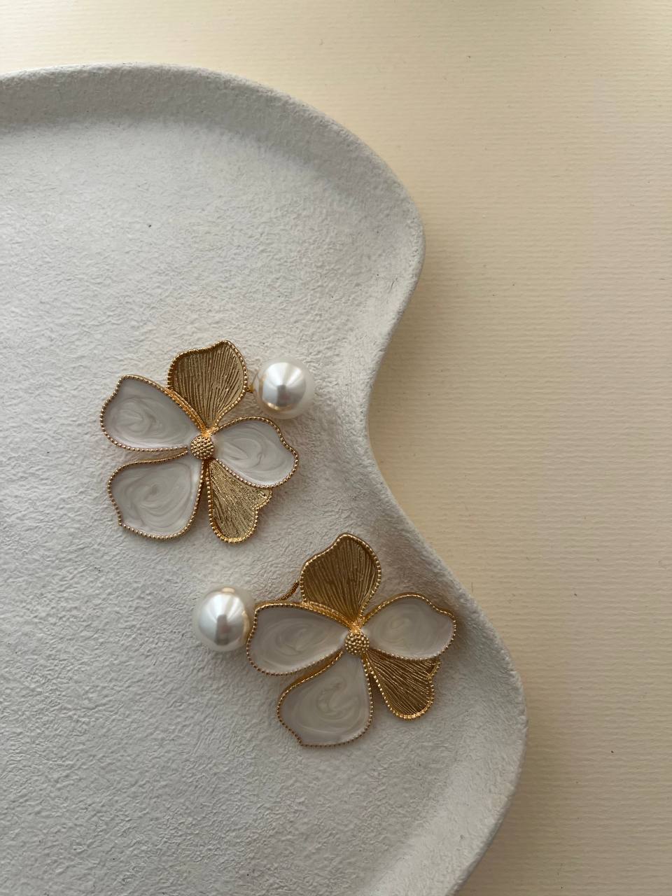 گوشواره میناکاری مرواریدی طلایی سفید
